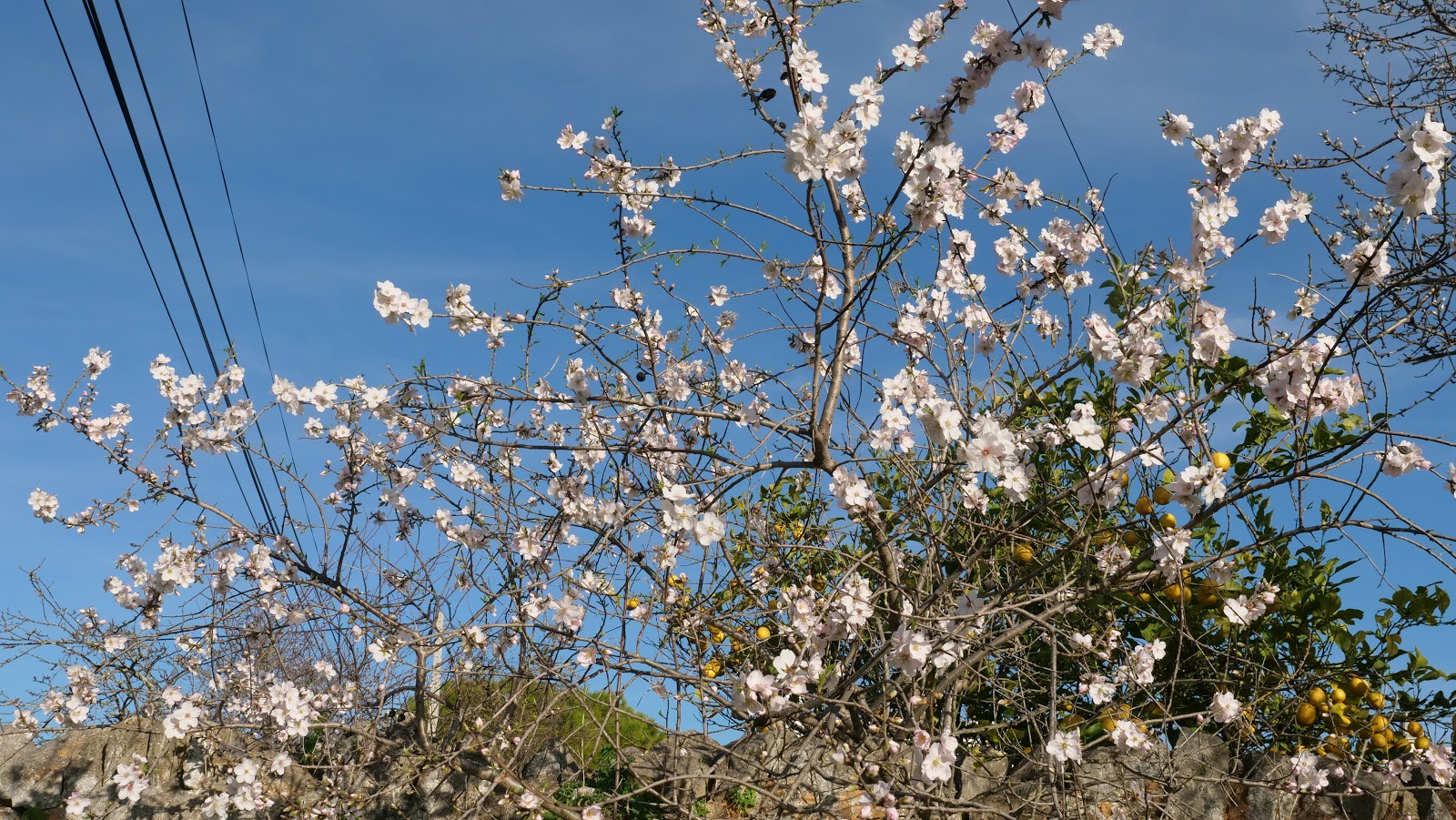 A velha amendoeira centenária continua firme de pé ora vestindo-se de verde ora de flores brancas únicas inimitáveis numa imitação infindável de si própria repetindo-se todos os anos.
